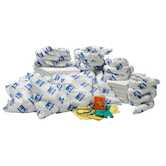 - Includes: (100) 15 in x 19 in Pads, (5) Disposal Bags, (7) 18 in x 18 in Pillows, (7) 3 in x 12 ft Socks, Goggles, Handbook, Nitrile Gloves