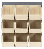 - Brand: Quantum Storage SystemsBin Color: IvoryBin Quantity: 9Color: GrayCountry of Origin: TaiwanMaterial: Carbon SteelSize: 19" H x 18" L